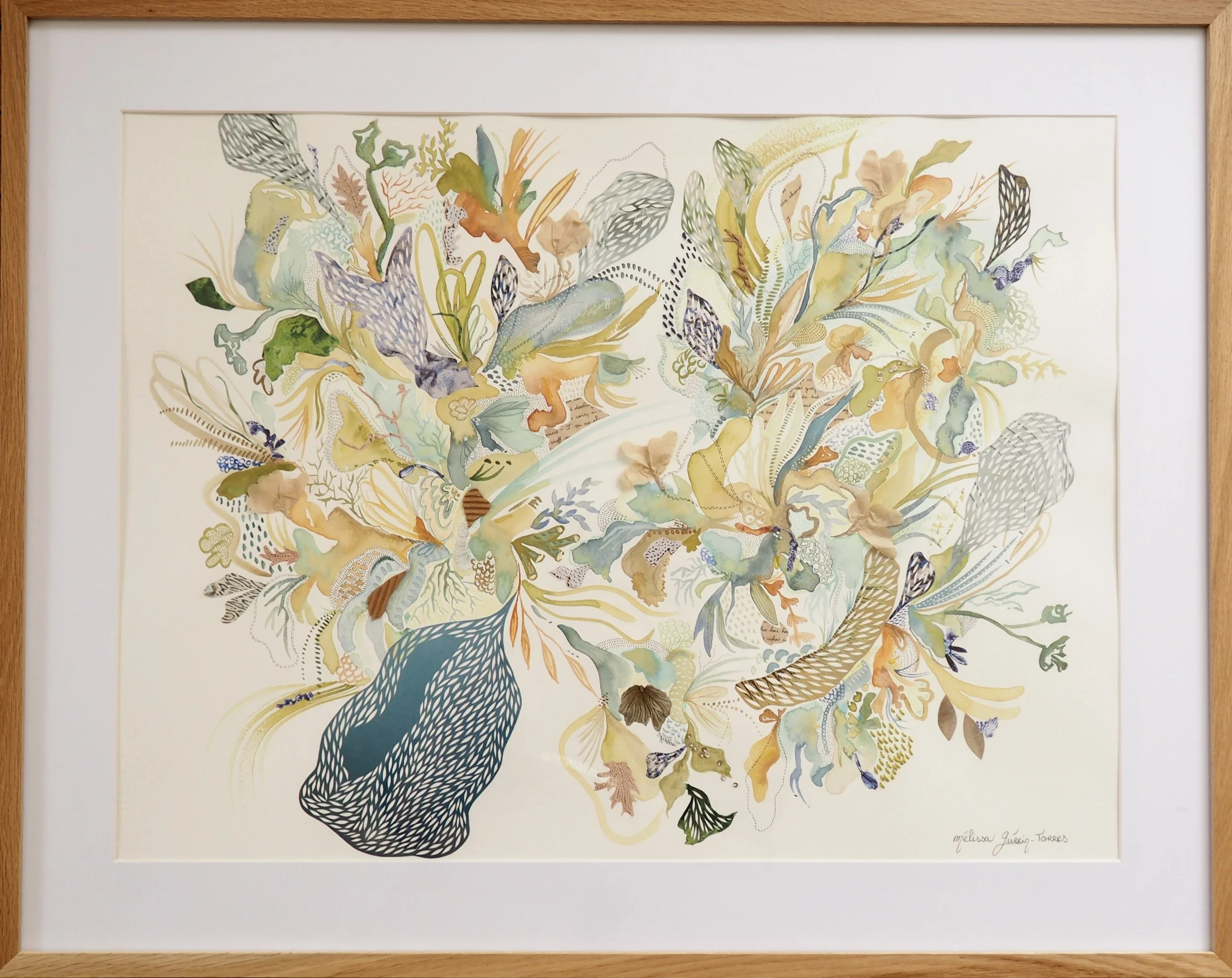 I am a daydreamer, my work is inspired by the colorful landscapes that I encountered in my travels. Creating is a form of meditation for me, I enjoy the play of colors and textures using diverse medium. I work with watercolor, ink, pencil, hand cut paper, wire, collage and sewing.